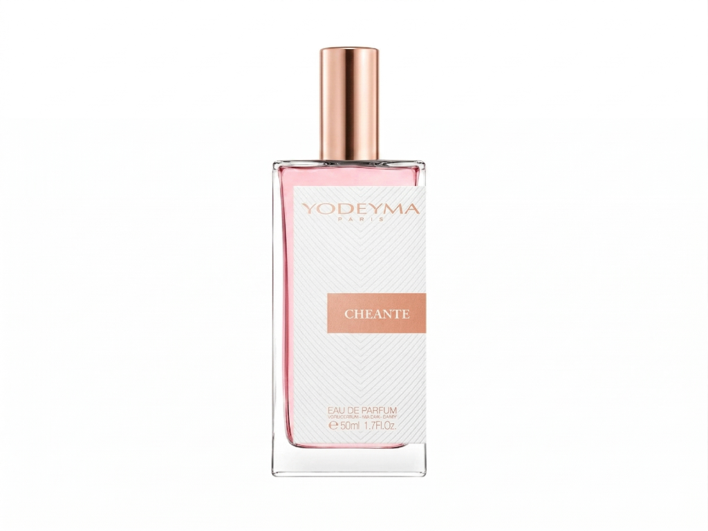 Elegantní dámská vůně Yodeyma Cheante se inspiruje vůní Coco Chanel - Coco Mademoiselle, díky níž se budete cítit jako pravá francouzská žena. Tento parfém je legendou již více než 15 let. Jako první vás nadchne pomerančovník a citrusy. Dále Vás přenese do květinové zahrady, která ve vás zanechá hlavně nezapomenutelnou vůni růží, jasmínu a mimózy. Vanilka a pačuli to nanejvýš ještě podtrhne.